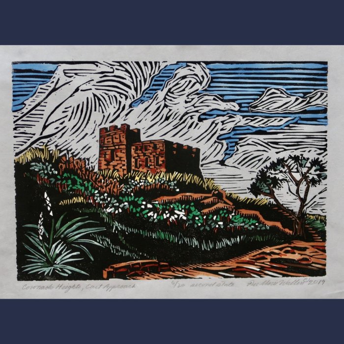 For the exhibition, she has selected a sampling from her 93 editions as well as the Christmas card collection that she has produced every year since age nine. Wallen is drawn to the strong impact of block print images and because of the detail required, she makes linoleum cuts more often than woodcuts. For her other work, she is attracted to wildlife and landscapes, usually local scenes.