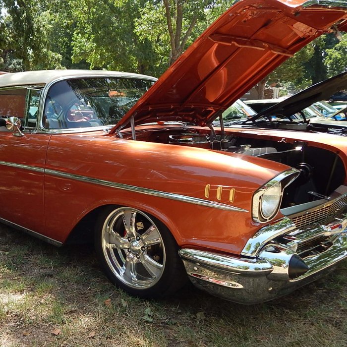 On the first Saturday in August, the Smoky Valley Classic Car show’s distinction derives from the shade-filled location and small town friendliness. Popular awards and highlights are the Police Chief’s Choice and Sheriff’s Choice for the cars most likely to be stopped by those agencies, and the Kansas Highway Patrol award for the car most likely to be stopped for no reason at all!